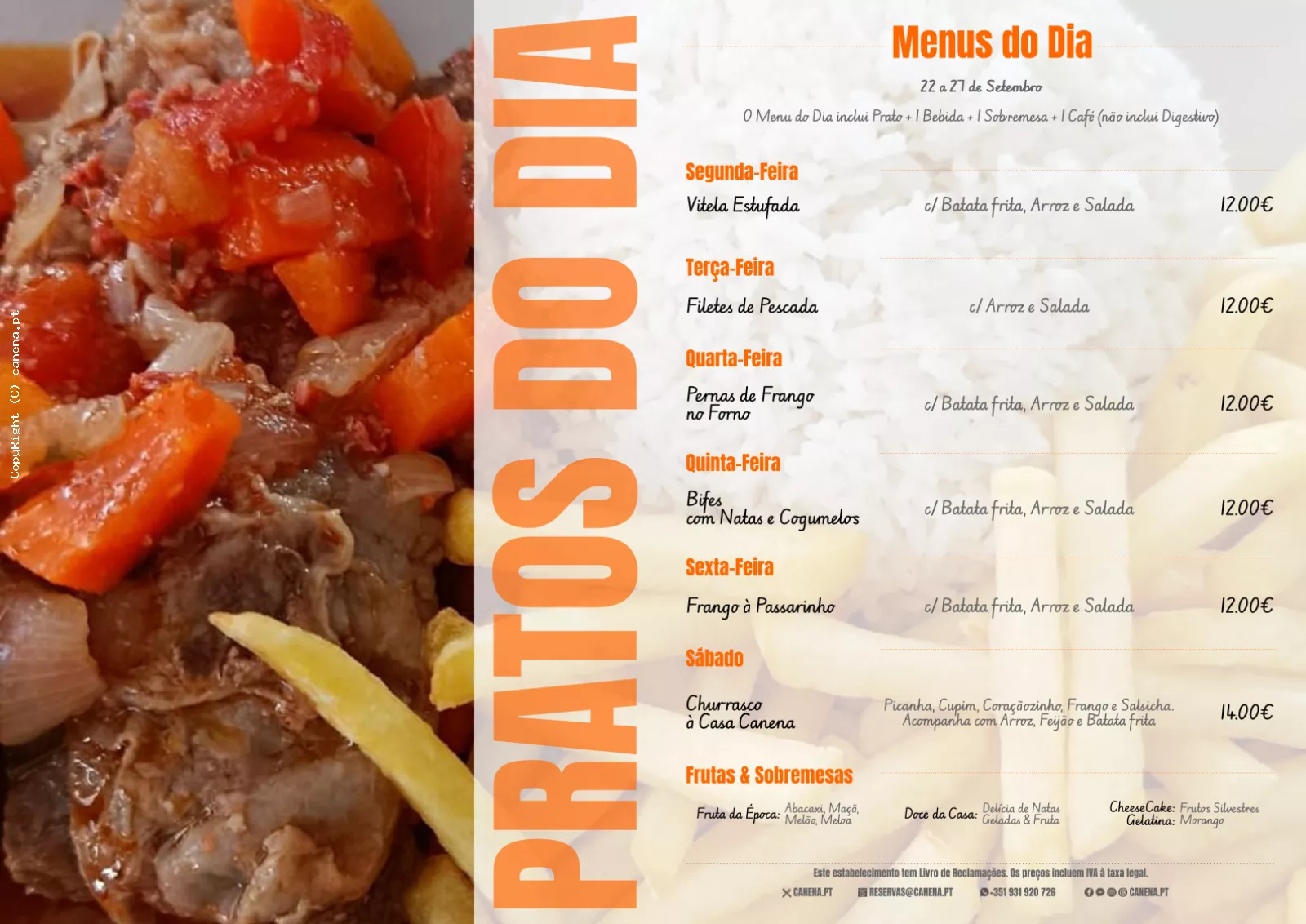 Ementa da Semana de 22 a 27 de Setembro, na Casa Canena