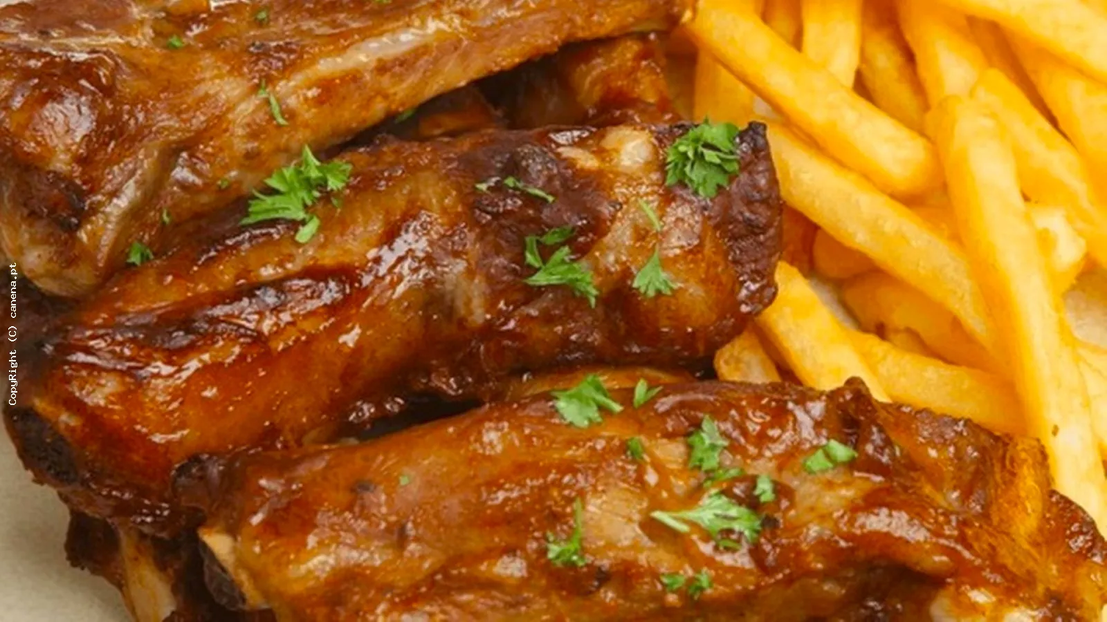 Servido com batata frita crocante, arroz branco soltinho e uma salada fresca de alface e tomate, o Entrecosto no Forno apresenta um equilíbrio perfeito entre intensidade e frescura. Os acompanhamentos absorvem o molho e acrescentam texturas que tornam a refeição completa e satisfatória.