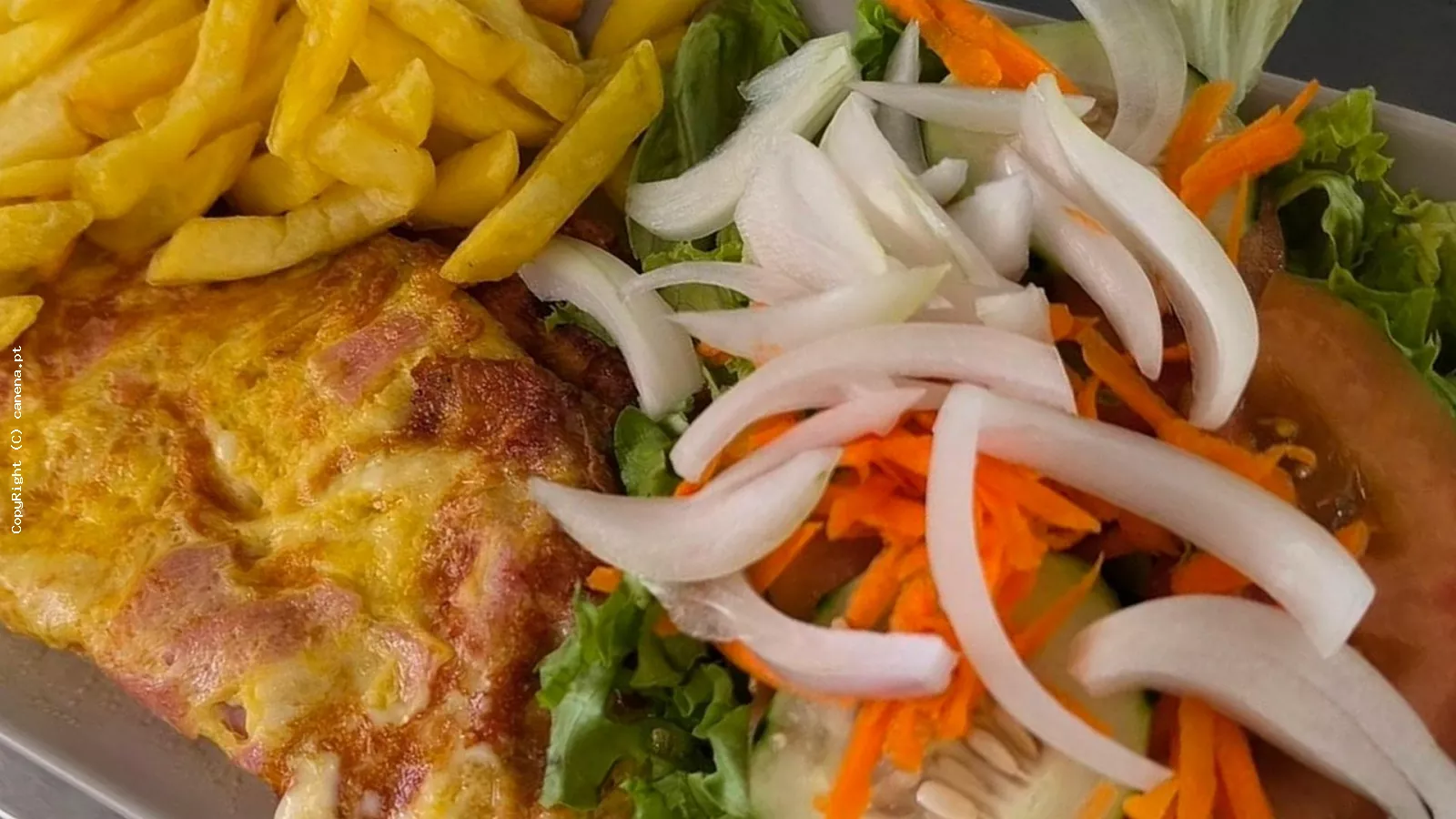 Pode encomendar a sua Omelete de Queijo com Batata Frita e Salada e levantá-la no Restaurante Casa Canena para saborear no conforto da sua casa.